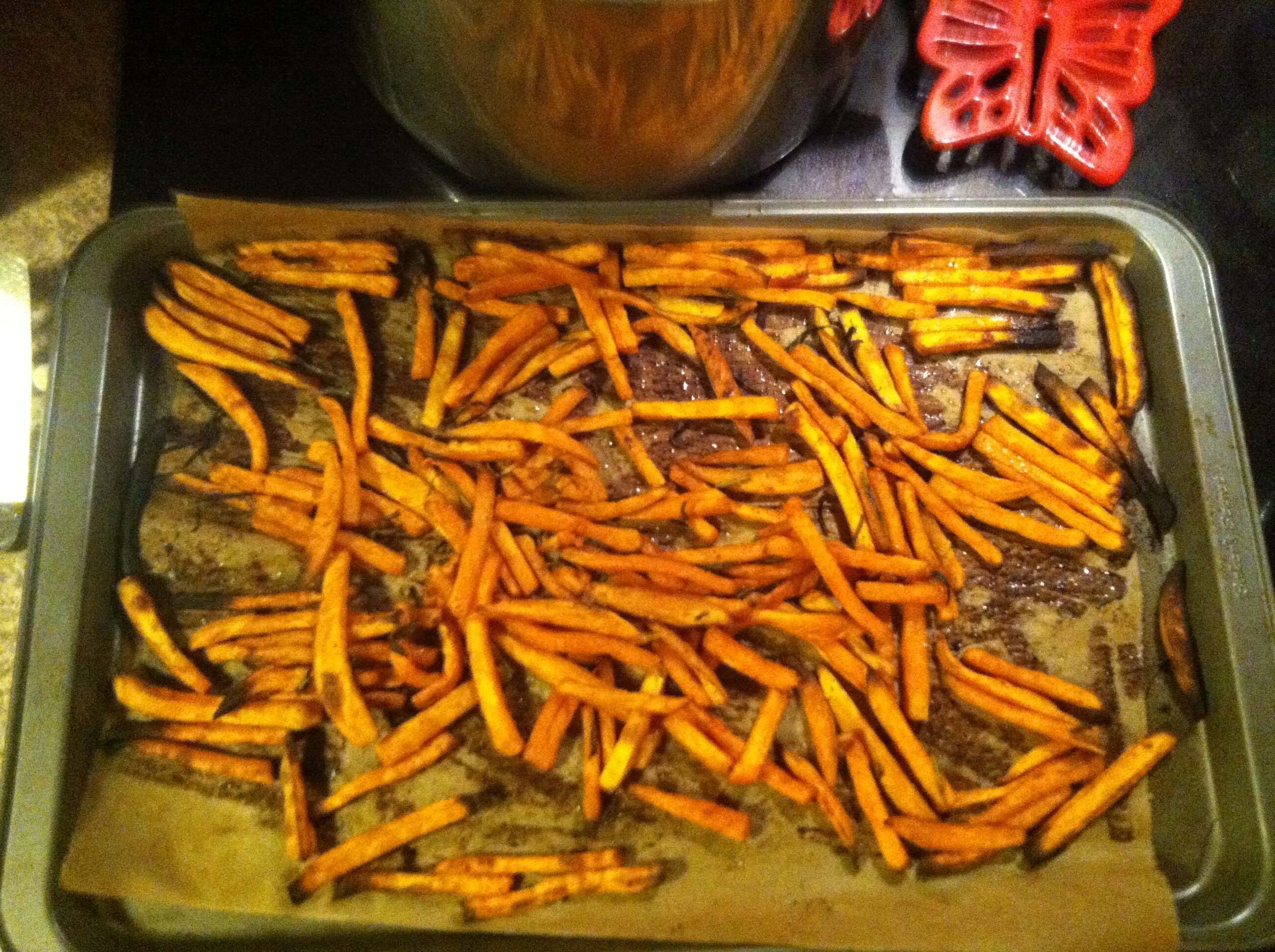 This recipe for gluten free sweet potato fries is amazing–tasty and easy. In fact, the hardest part is not chopping your fingers off when you are cutting the sweet potato. Seriously, you will want to/try to chop your fingers off. But don’t. It’s not a good idea, even though it seems like one at the time.