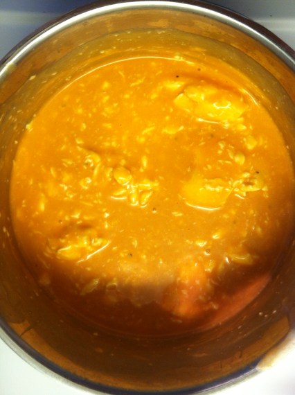 I made the sauce the day before and reheated it over low, stirring frequently.When I made it the day ahead, I put it on some chicken wings that I did in the oven (400 for 45 minutes. Boom. Easy.)