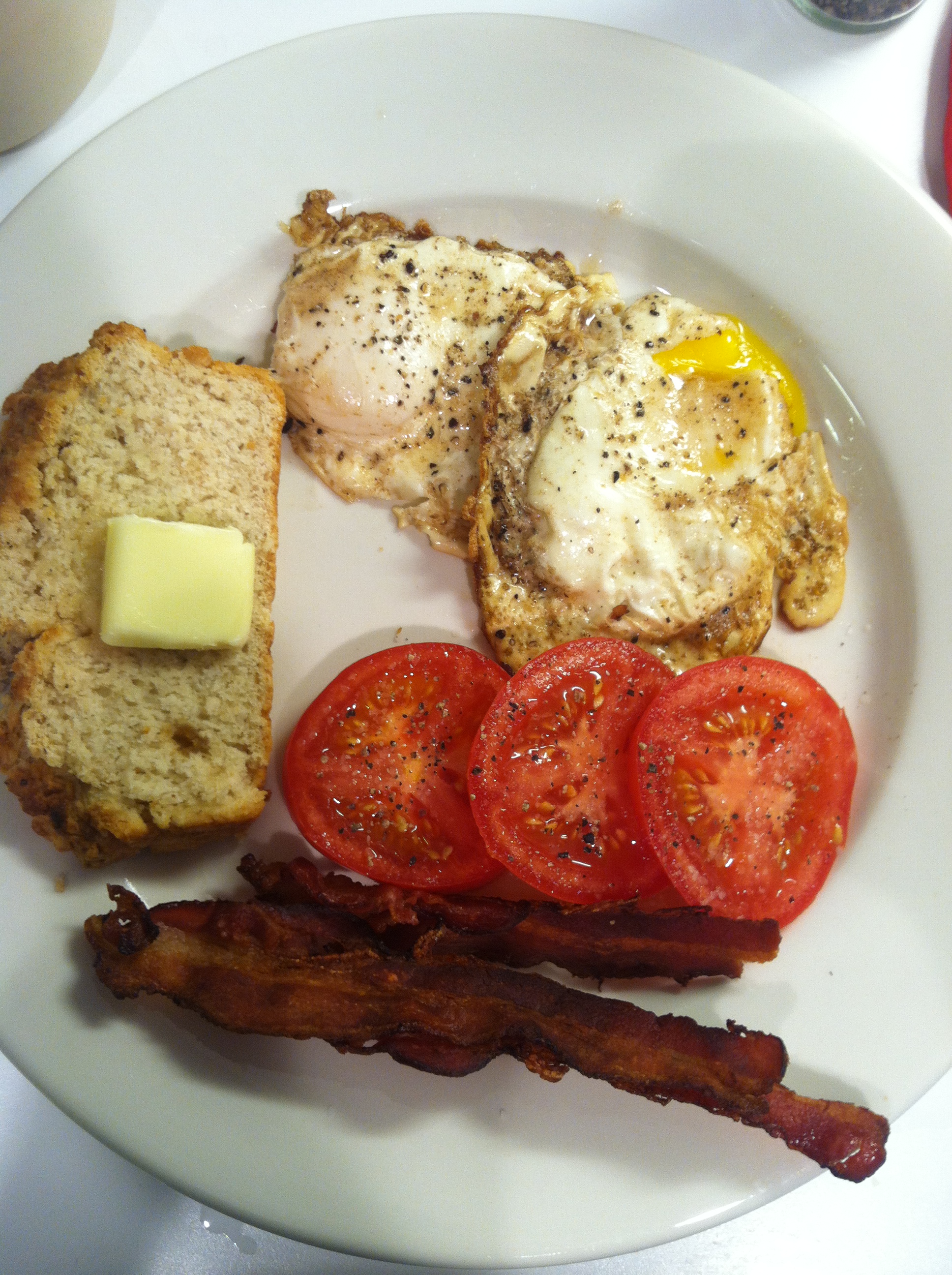 Here’s how it all went down. I saw a link on YumSugar today for a one hour start-to-finish bread recipe. It was for Black Pepper Beer Bread and I really wanted to make it. And brinner seemed to be the perfect vehicle.