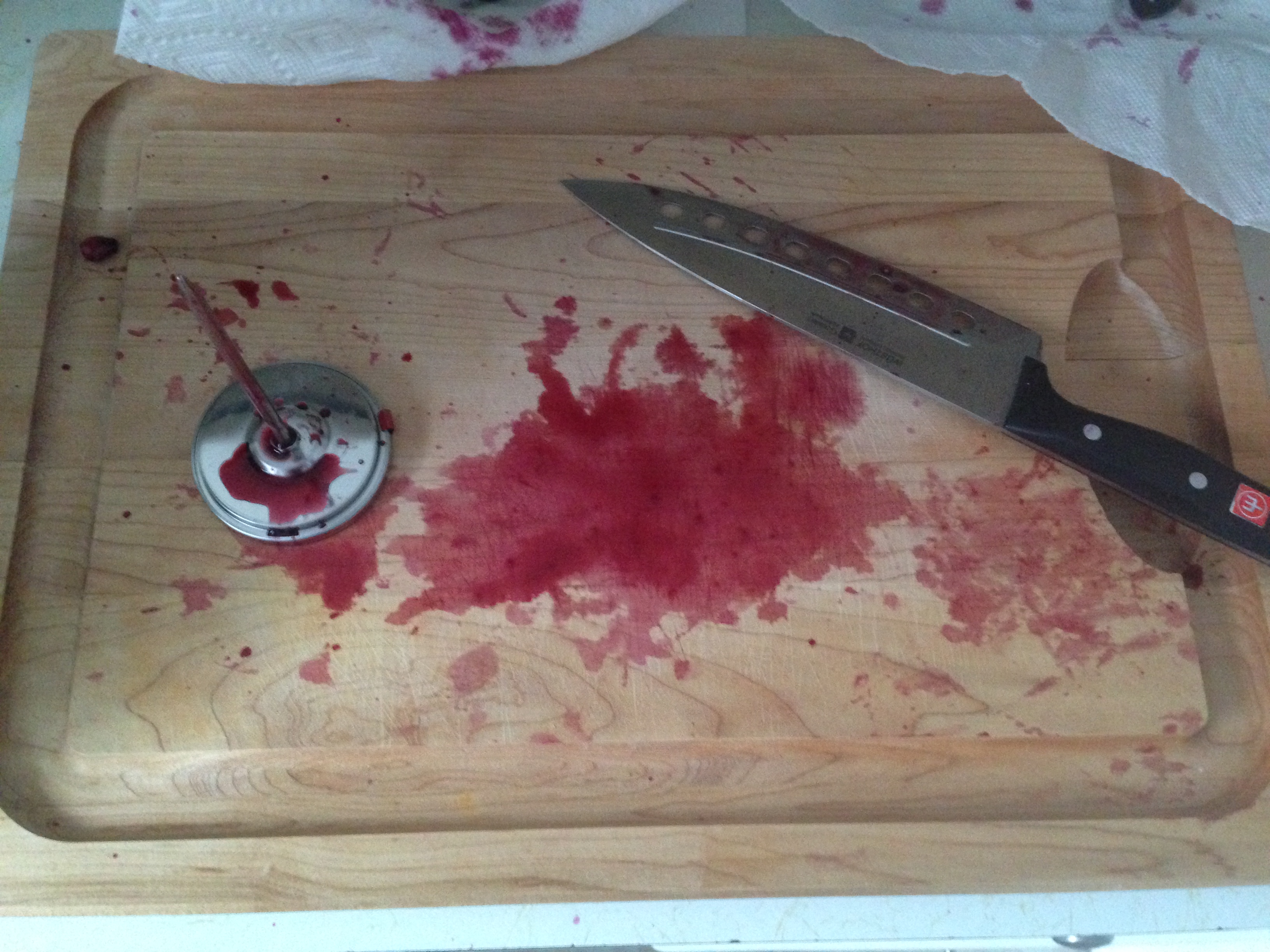 When the fruit has cooled slightly, the skin should slip off easily when scraped with the back of a knife. (This did not really work for me, so I used a vegetable peeler on the stubborn skin.)