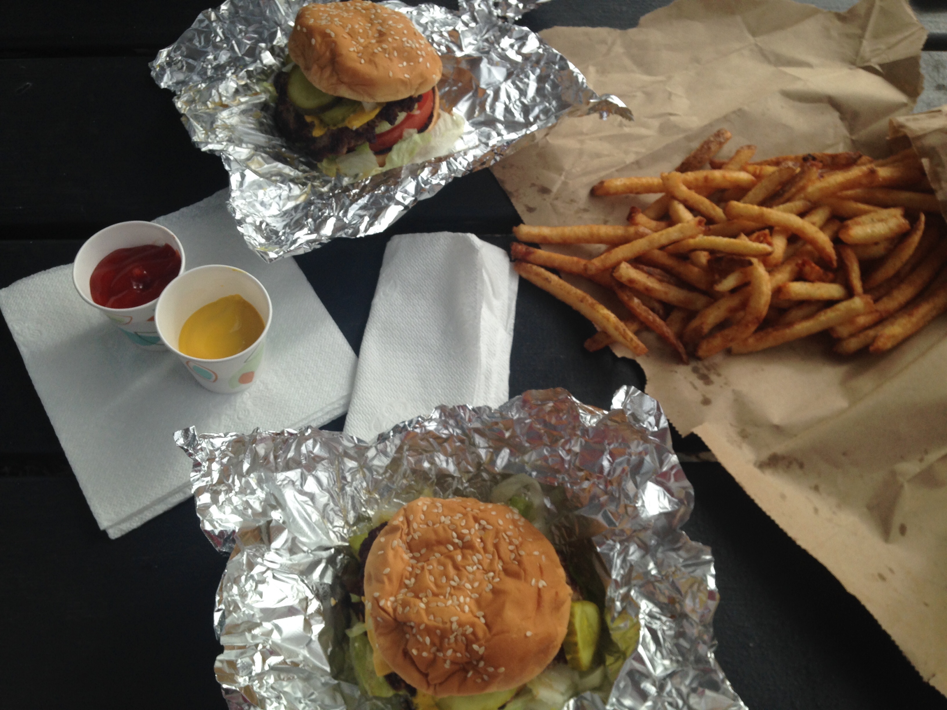 - Fat Andy’s: This is a wonderful example of food executed perfectly in a no-frills environment. It’s a cash-only place on the side of the road with picnic tables outside. Ain’t nobody got time for indoor seating. This burger was absolutely delicious. Every component was super fresh, served alongside the crispiest fries I’ve ever eaten. Fulton appreciated the fries as much as we did.