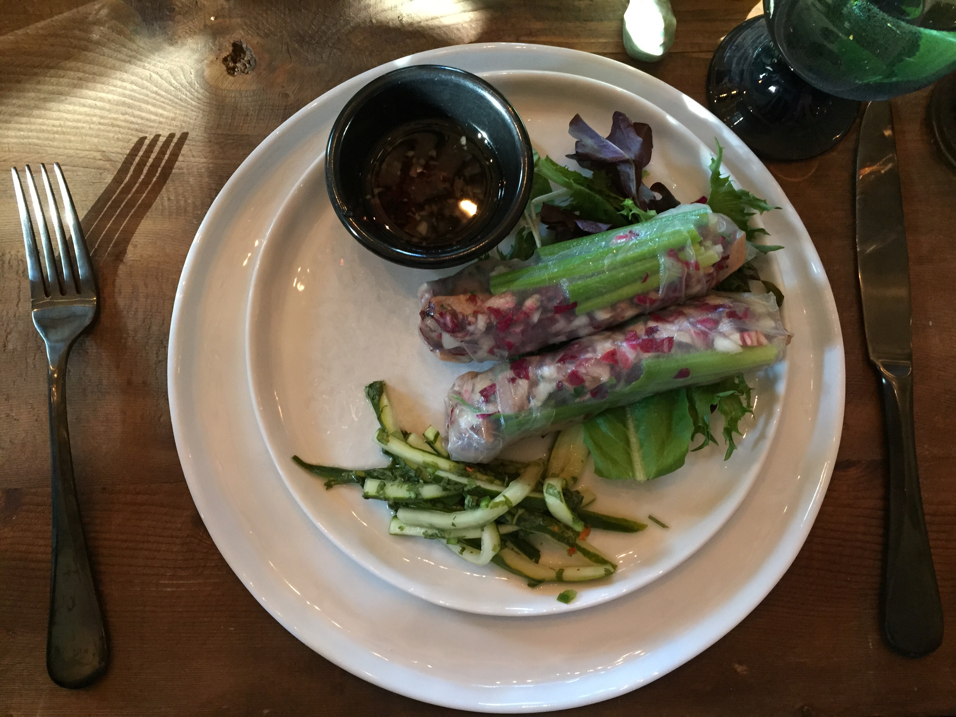 Roast Duck and Scallop spring roll with spicy pickled cucumbers. I did not have the scallop because I am allergic, but I'm sure it would've been great.